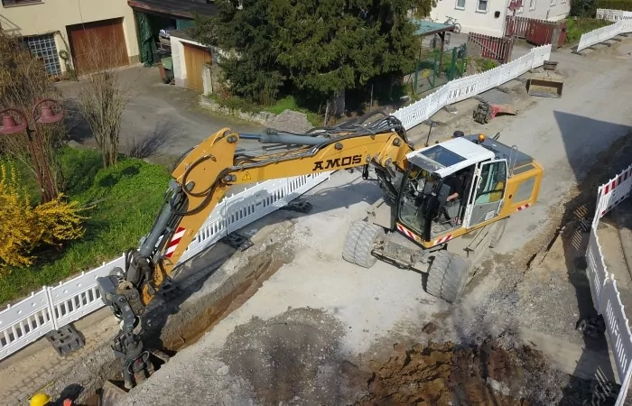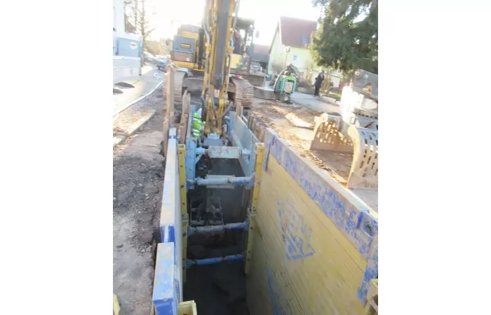 Kanäle bis 5,5m Tiefe, sämtliche Versorgungsleitungen (Wasser, Gas, Starkstrom, Medien mit Glasfaser), Straßenbau